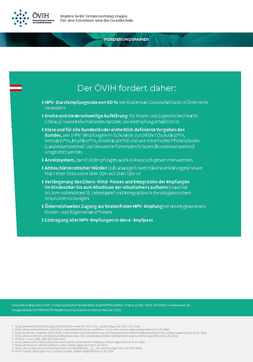 Factsheet zu HPV mit den wesentlichen Argumenten und Forderungen